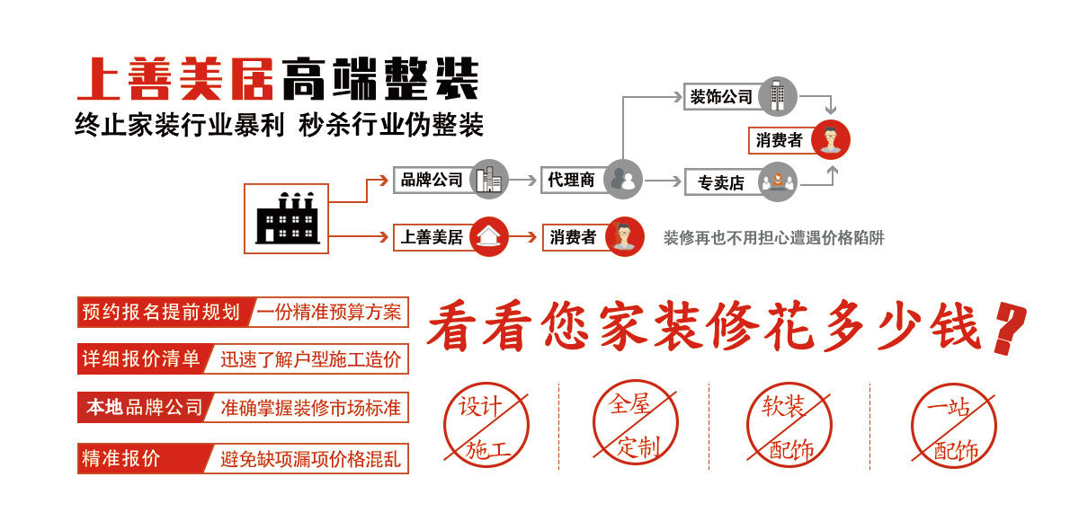裝修預算數據由上善美居歷史服務裝修數據、各大城市裝修公司合同數據經過大數據實時分析計算。